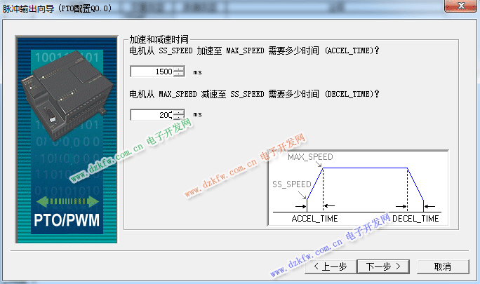 D、單擊“下一步”填寫電機加速時間“1500”和電機減速時間 “200”。