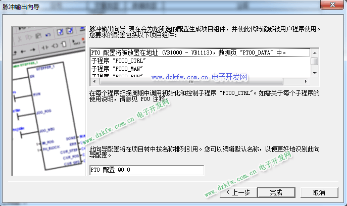 F、運動包絡編寫完成單擊“確認”,向導會要求為運動包絡指定V存儲區地址(建議地址為VB75~VB300),默認這一建議,單擊“下一步”出現下圖,單擊 “完成”。