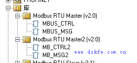 我們如果采用的是CPU本地的串口,那么我們選擇庫文件為Modbus RTU Master;若是擴展通訊板,則選擇Modbus RTU Master2。