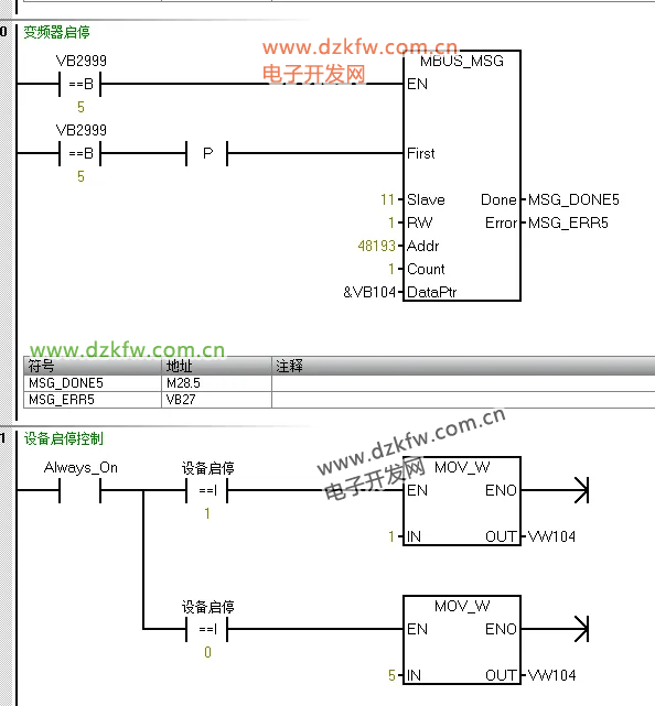 當48193=1時,變頻器啟動;當48193=5時,變頻器停止。
