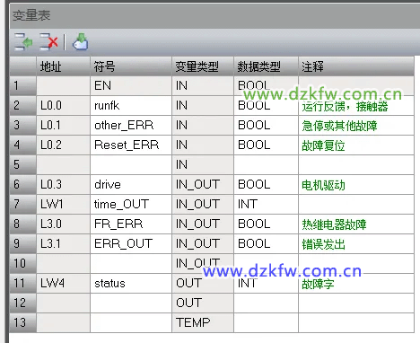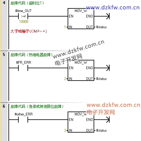 (1)啟動或停止超時報故障(1.啟動信號已給,但是接觸器沒吸合;2.停止信號已給,但是接觸器沒斷開)