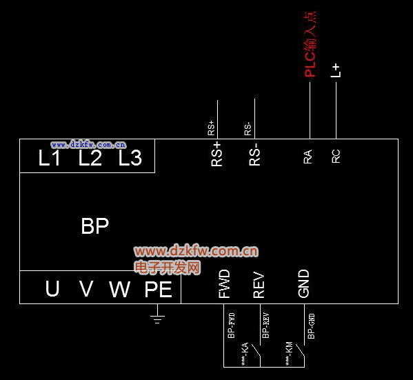 PLC九針口上的3和8接變頻器控制端子上的RS+和RS-。眾辰變頻器