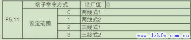 P5.11=1二線制模式;運行/換向(端子啟停)