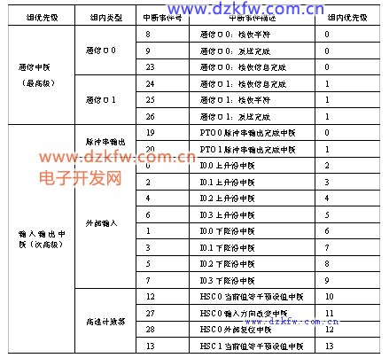 中斷優先級由高到低依次是:通信中斷、輸入輸出中斷、時基中斷。每種中斷中的不同中斷事件又有不同的優先權。
