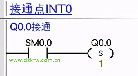 如下圖把1號中斷事件(I0.0下降沿)與中斷程序1號INT1相連接