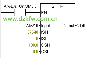 Input:對應模擬量輸入通道地址,如選用模擬量通道0則是AIW16。