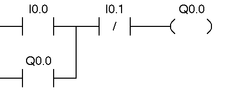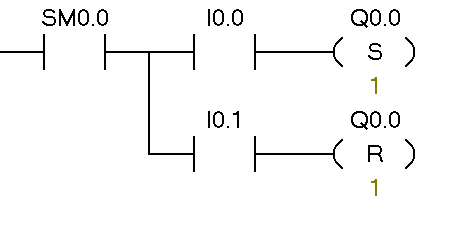 第二個線圈程序:M0.0按鈕按下+常開觸點M0.7斷開→M0.1線圈不復位