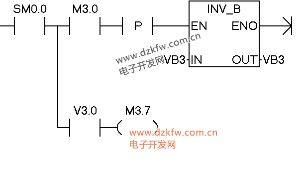 線圈程序:VB3=0→V3.0=0→M3.7線圈失電