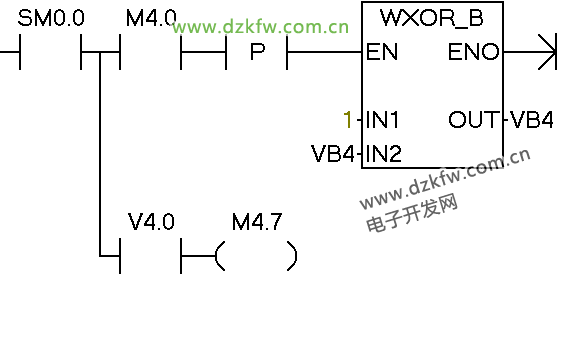 線圈程序:VB4=0→V4.0=0→M4.7線圈失電