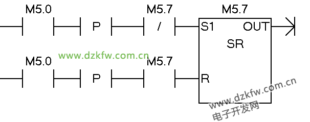 置位優先程序:M5.0按鈕按下+常閉觸點M5.7閉合+置位優先指令→M5.7置位當前掃描周期開始時5.7未得電