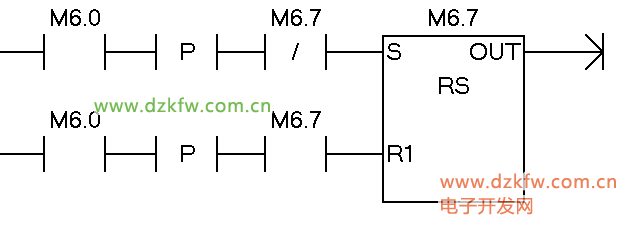 置位優先程序:M6.0按鈕按下+常開觸點M6.7閉合+復位優先指令→M6.7復位
