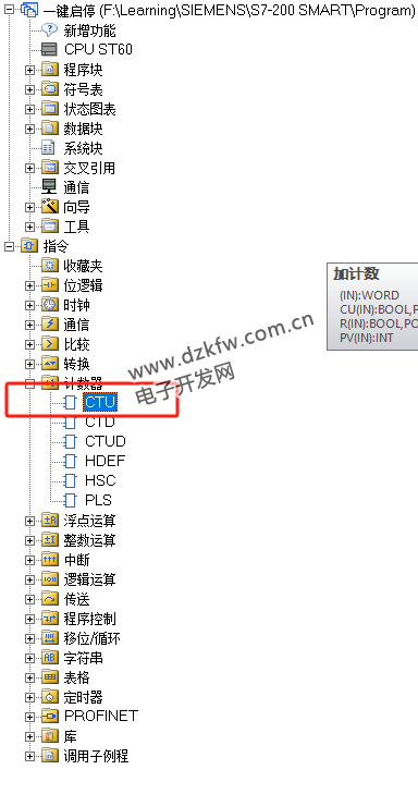 軟件自帶的幫助文檔中只有減計數器,不過原理都差不多。