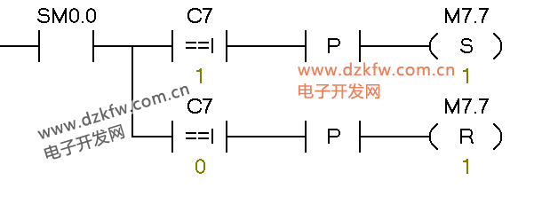 復位線圈:C7=1→M7.7不復位當前掃描周期開始時7.7未得電(C7=1)