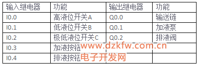 控制要求:按下加液按鈕時,加液泵啟動并開始加磷化液,當(dāng)液位到達(dá)低液位B 的位置時,啟動輸送鏈,當(dāng)液位到達(dá)高液位A 的位置時,加液泵停止。當(dāng)液位下降到低液位B時,又啟動加液泵加液,如此自動進(jìn)行加液控制。如果由于泄露等其他原因?qū)е乱何惶幱贑液位時,停止輸送鏈的運行。當(dāng)磷化槽使用了一斷時間之后需要換液時,按下排液按鈕,打開排液閥,并停止輸送鏈的運行,當(dāng)液位處于極低液位C以下時,延時3min關(guān)閉排液閥。