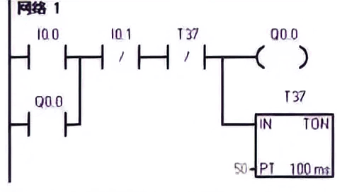 3. 延時啟?刂齐娐吩撾娐芬笥休斎胄盘柡,停一段時間輸出信號才為 ON;而輸入信號 0FF 后,輸出信號延時一段時間才 OFF。T37 延時 3 s 作為 Q0.0 的啟動條件,T38 延時 5 s 作為 Q0.0 的關斷條件。