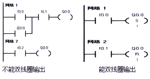 (2)梯形圖中同一編號的“繼電器線圈”只能出現一次,通常不能出現,但是它的觸點可以無限次地重復使用。