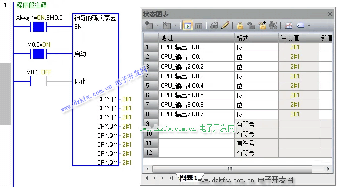 第二步:(監(jiān)控程序,M0.0=1時啟動激活Q0.0-Q0.7輸出)