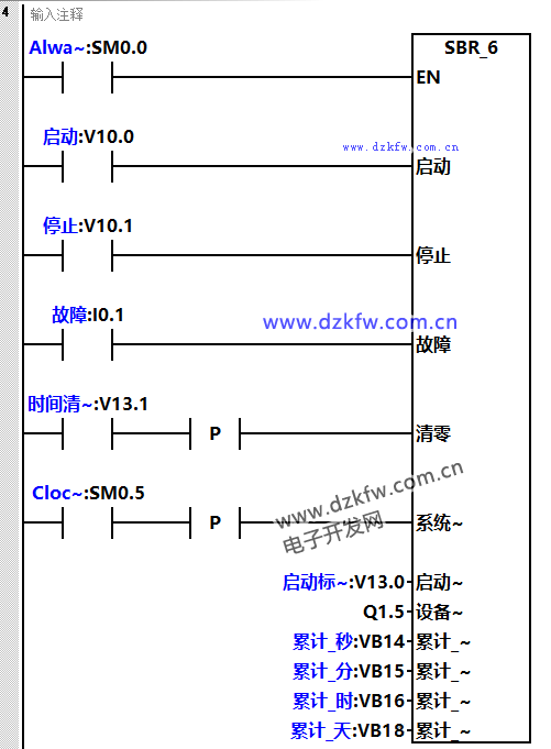 (3)當按鈕停止按鈕或者設備故障了,運行時間保留,再次啟動時,時間繼續累計。