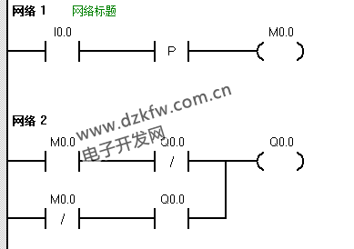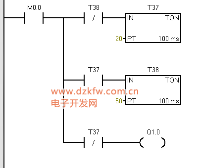M0.0接通時,就會在Q1.0上生成一個接通2s,斷開5s的斷續信號。