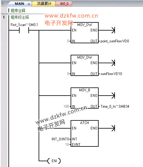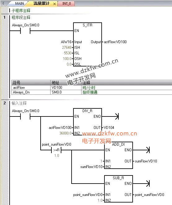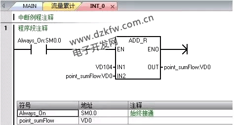 西門子S7-200smart通過瞬時流量來計算累計流量的一種方法 中斷IN_T0