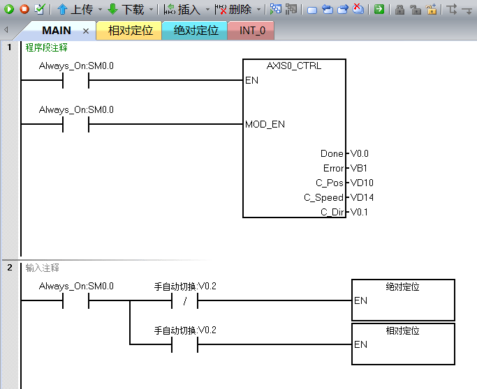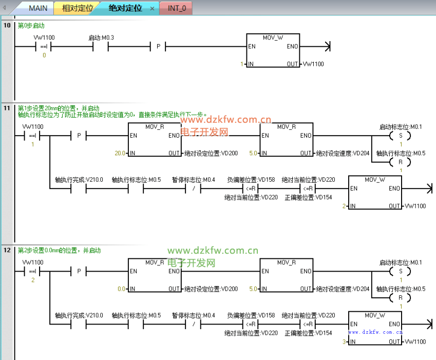 絕對定位的位置是唯一的,暫停后繼續執行GOTO指令即可,不需要和相對定位那樣記錄位置,并且絕對定位誤差較小,更適合應用于往復運動的定位控制,不容易產生太大的誤差,具體程序如圖8—圖12所示,程序有注釋講解,這里不做過多的介紹,有問題可以在評論留言。