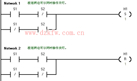 PLC梯形圖編程:PLC完成樓道內對照明燈的雙向控制梯形圖