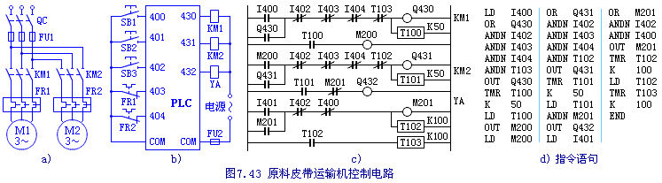 梯形圖實例:原料皮帶運輸機控制電路PLC編程實例
