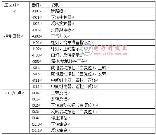 由于電氣控制回路較為簡(jiǎn)單,這里就不做詳細(xì)介紹了。表1為電路中的相關(guān)器件及功能說明。