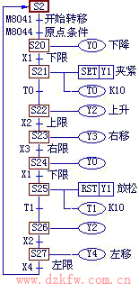 上升→右移→下降→松開→上升→左移的次序依次運行。 下降 / 上升,左移 / 右移中使用雙線圈的電磁閥。夾緊使用的是單線圈電磁閥。