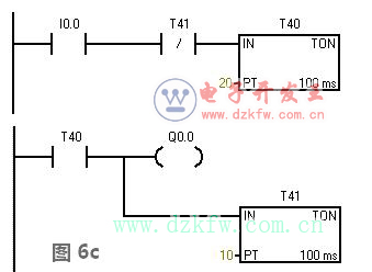 圖6c為 一個斷2s、通1 s的閃爍電路控制梯形圖。