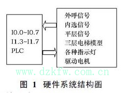 硬件系統(tǒng)主要包括PLC、三層電梯模型。硬件系統(tǒng)的結(jié)構(gòu)圖如圖1所示。