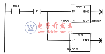 首先,確定使用哪個端口來發(fā)脈沖,如采用Q0.0發(fā)脈沖,則它的控制字為SMB67,脈沖同期為SMW68,脈 沖個數(shù)存放在SMD72中,