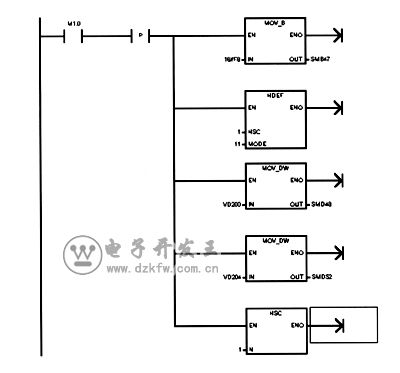同樣的,如果計數(shù)器在工作狀態(tài)下想停止計數(shù)器,也必須改變它的控制字后,啟動HSC具體程序 如下: