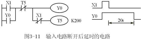 供其線圈“通電”后延遲動作的觸點,如果需要在輸入信號變?yōu)镺FF之后的延遲動作,可以使用圖3–1l所示的電路。