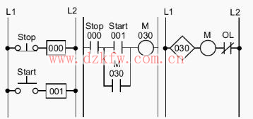 要對PLC進行編程,必須按照與硬連線電路相同的邏輯順序對器件進行編程(參見圖3)。 因此,停止按鈕將被編程為與啟動按鈕串聯的檢查指令(常開PLC觸點),該啟動按鈕也被編程為檢查指令。