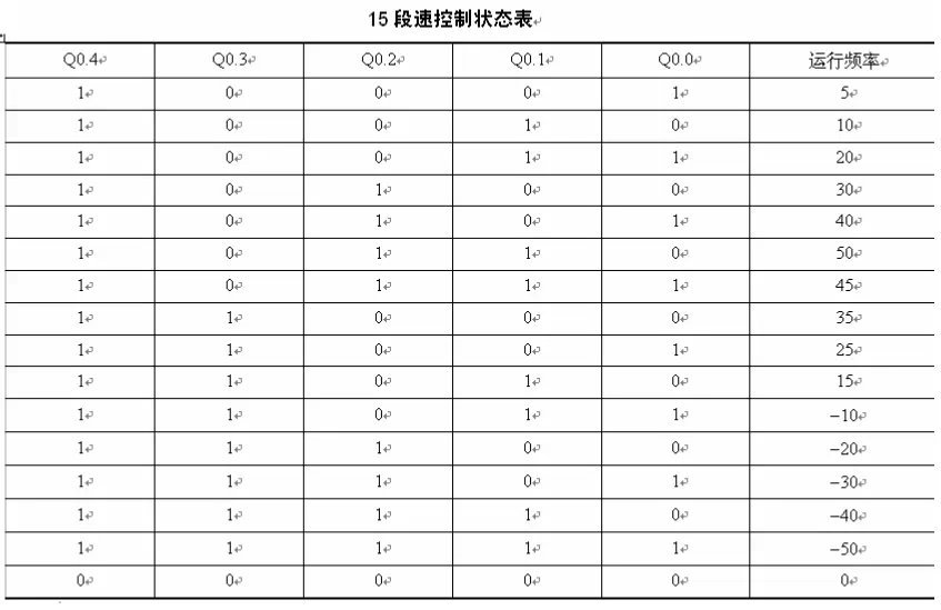 (2)PLC輸出接口狀態、變頻器輸出頻率、電動機轉速變化