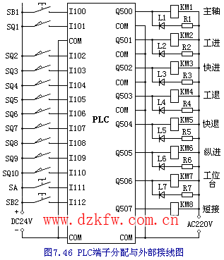 啟動按鈕SB1 快進限位SQ1 工進限位SQ2 大拖板原點SQ3 縱進限位SQ4 工位1限位SQ5 工位2限位SQ6 工位3限位SQ7 工位4限位SQ8 工位5限位SQ9 工位6限位SQ10 工位臺手動SA 大拖板手動SB2 |