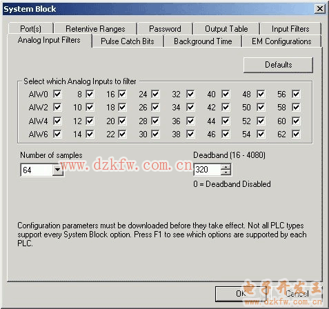 在Micro/Win 中進入“View > System block> Tab: Analog Input Filters”