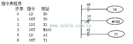 圖2所示為使用上述三條基本指令的梯形圖。圖2-1-4 LD、LDI、OUT 指令使用說(shuō)明梯形圖