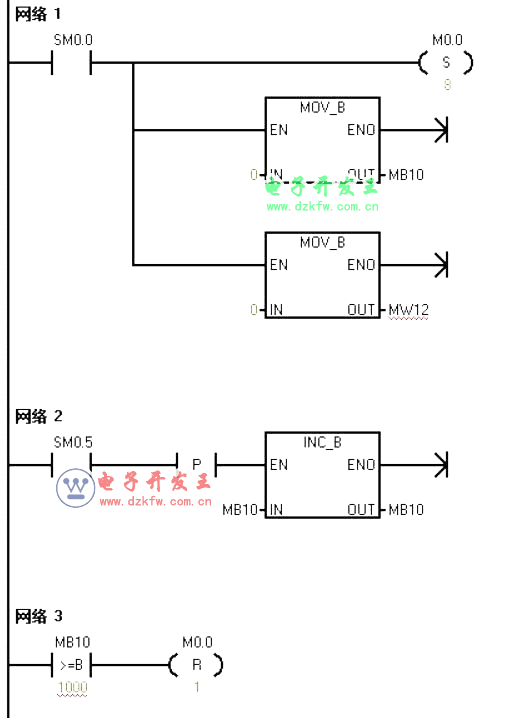 MW12是一個字長數據,而對其操作的指令MOV_B是一個對字節操作的指令,因此這里需要把MW12改為MB12,或者把指令改成MOV_W指令!