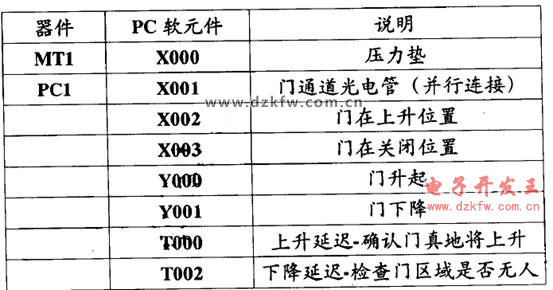 為防止不必要的開和關操作,壓力墊信號的接受必須有一段“檢測”時間。之后,輸出Y000將起動開門的過程,這個輸出自鎖。當門安全打開時,限位開關X002被激活,取消“打開”的輸出。門一直保持開,直到壓力墊和