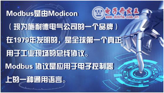 Modbus是由Modicon(現(xiàn)為施耐德電氣公司的一個(gè)品牌)在1979年發(fā)明的,是全球第一個(gè)真正用于工業(yè)現(xiàn)場(chǎng)的總線協(xié)議。Modbus 協(xié)議是應(yīng)用于電子控制器上的一種通用語(yǔ)言。通過(guò)此協(xié)議,控制器相互之間、控制器經(jīng)由網(wǎng)絡(luò)(例如RS485)和其它設(shè)備之間可以通信。