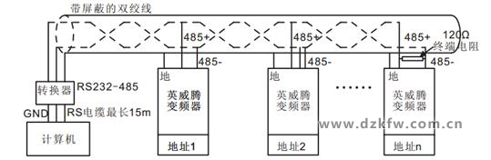 接線常采用如圖1-1所示的鏈?zhǔn)竭B接法,在遠(yuǎn)端加上120Ω的終端電阻。