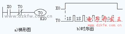 如圖4,為斷開延時程序的梯形圖和動作時序圖。