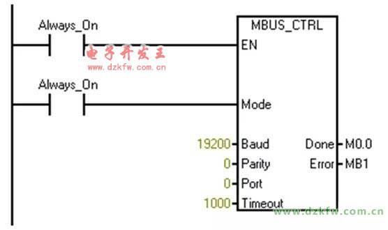 Port :端口號設置,若使用PLC本體上的RS485端口,則應選擇為0(注意S7-200PLC中的庫指令中的MBUS_CTRL沒有此管腳)