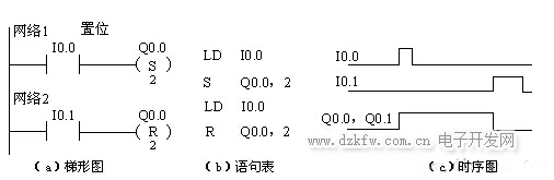 (2)S、R指令可以互換次序使用,但由于plc采用掃描工作方式,所以寫在后面的指令具有優先權。如在圖7.24中,若I0.0和I1.1同時為1,則Q0.0、Q0.1肯定處于復位狀態而為0。