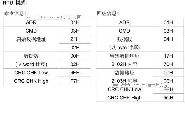 三、MODBUS RTU的通信格式(協議)