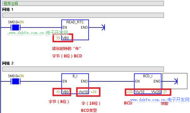 在讀時鐘時讀出的數據存儲到VB0,而此時數據類型是字節(8位),編碼方式也是特定的BCD碼,那么如何還原成十進制方式?
