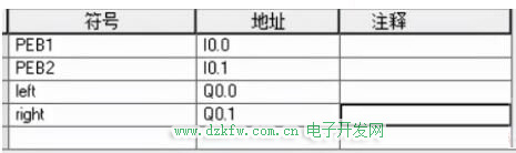 有兩個光電傳感器PEB1和PEB2,所以就有兩個輸入;有兩個指示燈left和right,所以就有兩個輸出。