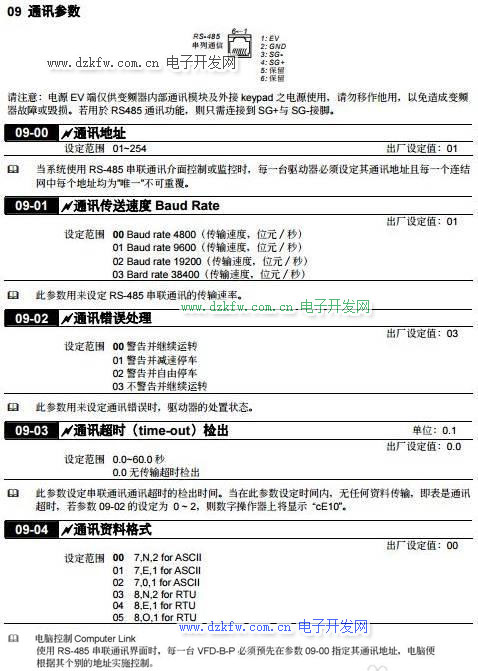 通訊參數出廠設定值如下圖所示。所以在使用PLC控制變頻器之前需要對變頻器進行必要的設置,如波特率,地址,通訊格式等等。